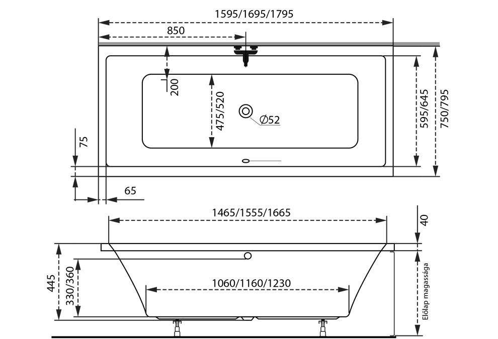 - Normél peremű kád