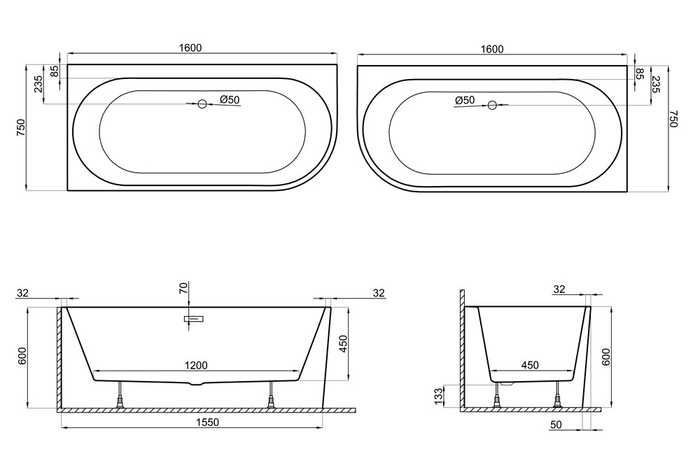 Cikkszám: M-Acryl Balance aszimmetrikus 160x75 cm BALOS akril kád