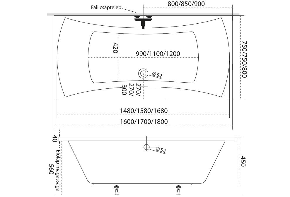 A kádat minden esetben a gyártó által javasolt lábra építsék be, mert ez feltétele a garanciának!